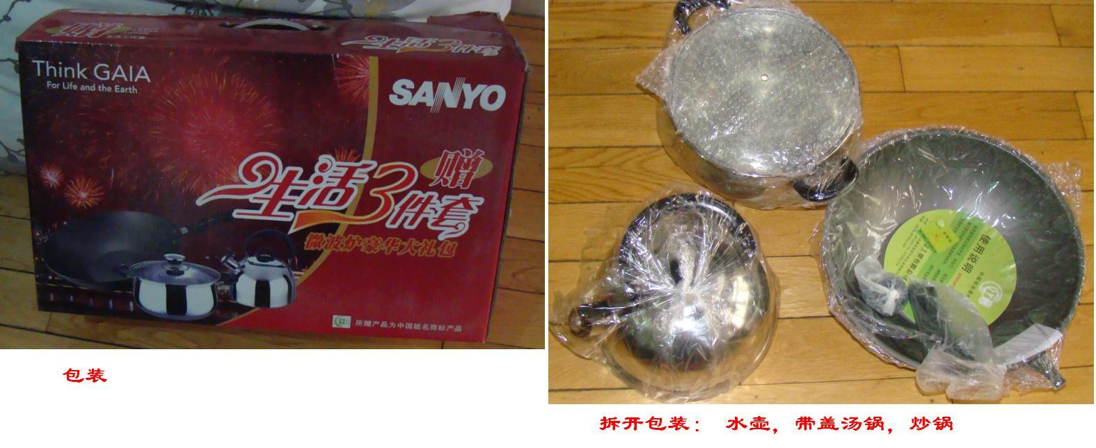 买电器赠送的生活三件套: 炒锅,汤锅,水壶