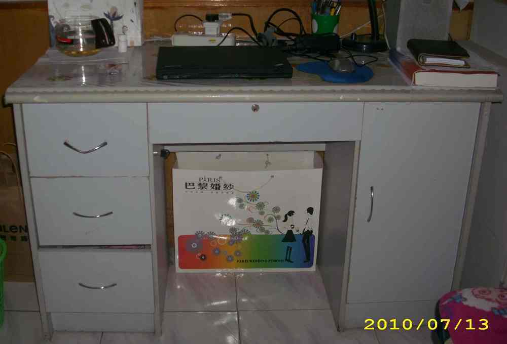 结实的电脑桌一个,白色的,耐用。赠1把椅子,超低价80元。请买家自取。