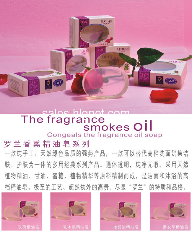 【描述】香皂由棕榈果内核油和椰子油,玫瑰精油,薰衣草精油等制成,带有淡淡地芬芳气息,独有的透明润肤成份,会使您的肌肤更加细腻、光滑并富有弹性柔软而温和的清洁和滋养您的肌肤,并留下怡人的芳香。