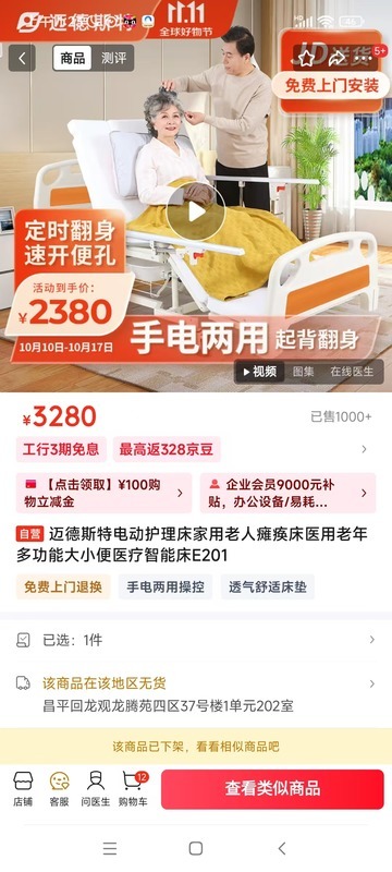 迈德斯特护理床,2023年买来后几乎没用过,一直闲置在家里。注:当时买入价2500元。