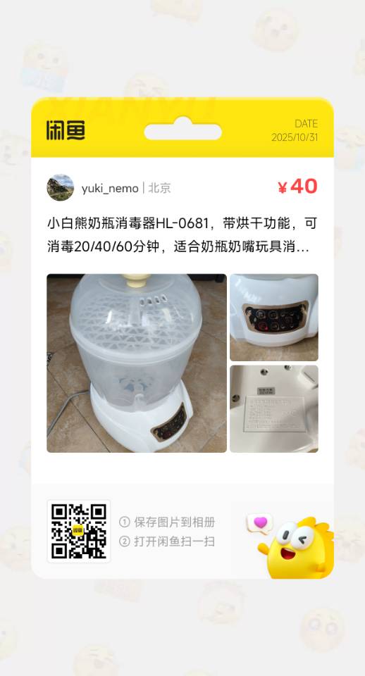 转让小白熊奶瓶消毒器HL-0681