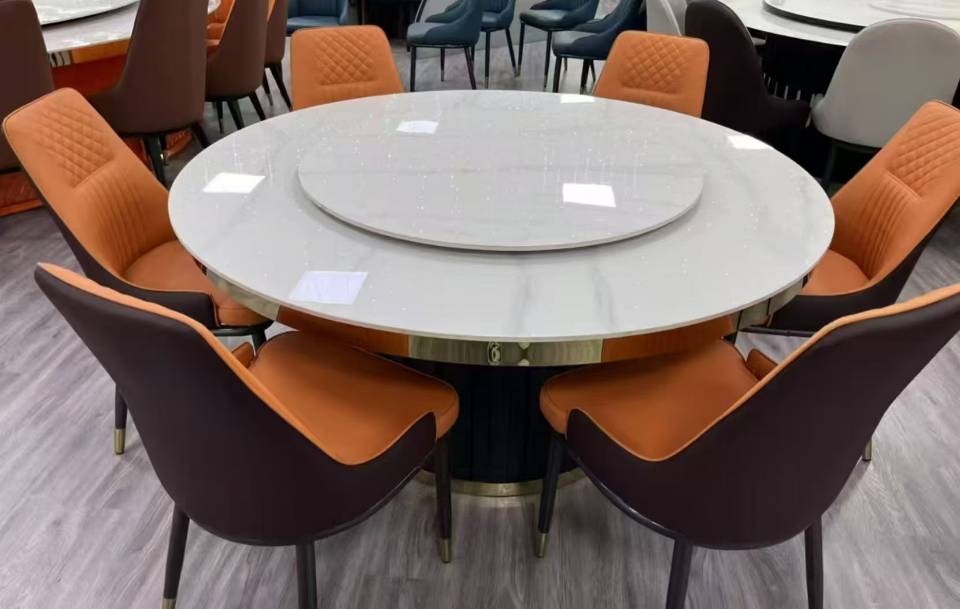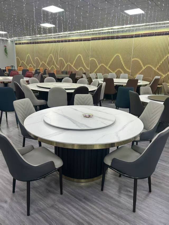 我厂现有一批特价岩板圆桌5折出售!!!尾货软包椅子3折出售!!!有需要的老板联系。
