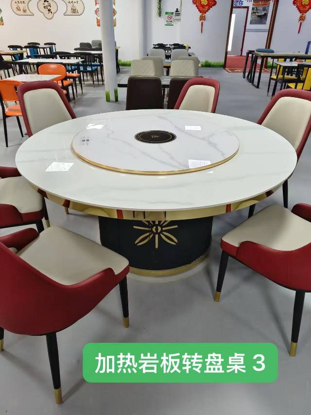 我厂现有一批特价(餐饮专用)的岩板圆桌5折出售!!!尾货软包椅子(餐饮专用)3折出售!!!