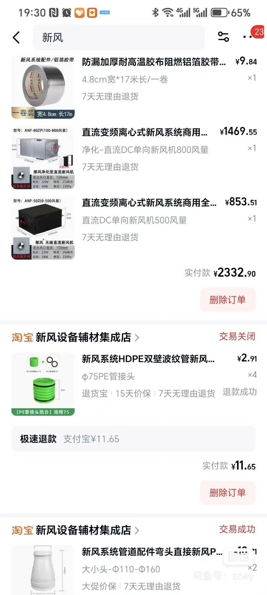 低价转让新风机两台,全新没拆箱。厂家直供,那风全新直流变频离心式新风机两台,800风量和500风量,型号ANF-80ZP和ANF-50ZP,都是220V电压,功率分别是270W和150W。还有一卷4.8cm宽17米长的耐高温胶带。价格2332.9,已付款。适用于家庭客厅、卧室、厨房、卫生间,餐厅,棋牌室等场景,室内、室外均可安装,净化空气,防雾霾,除甲醛。